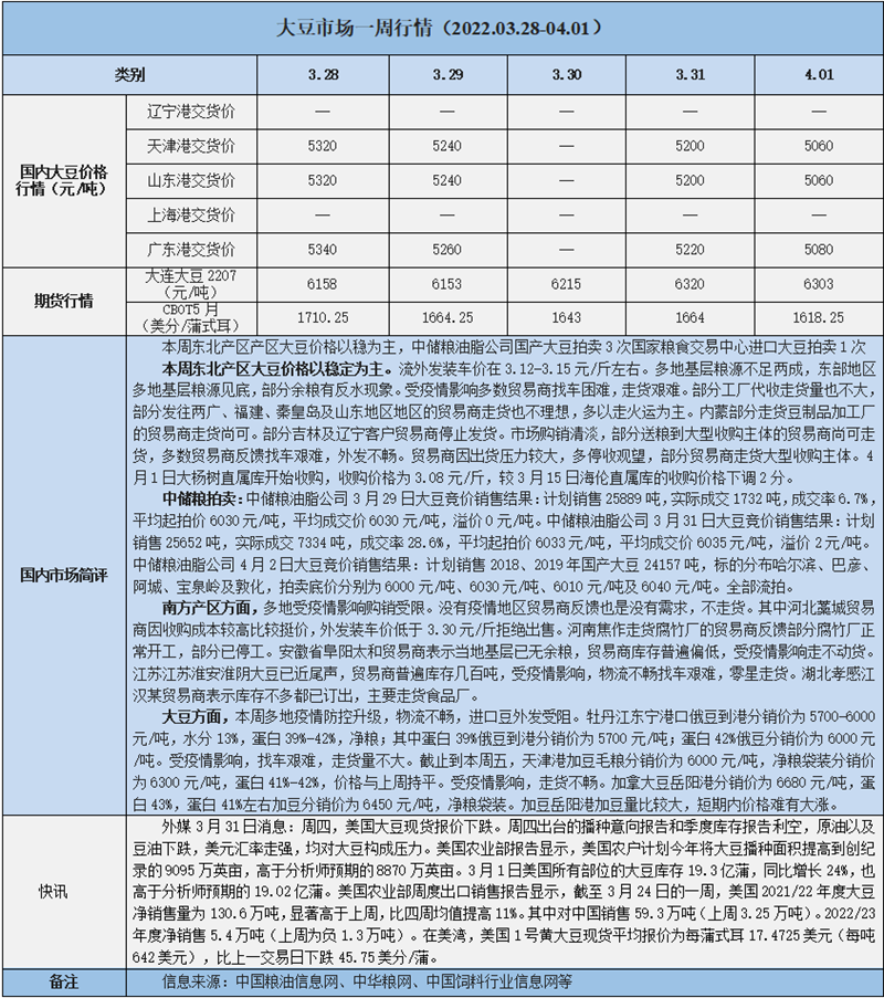 天然橡膠、大豆、玉米市場一周行情(2022.03.28-04.01)
