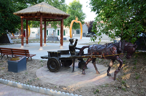 進入大院便是奮進園,周恩來總理和幾位墾荒者的巨型雕塑矗立其中。巨雕西面是群體雕塑“周恩來決策建農(nóng)場”;東面是一條綠樹掩映的半圓形文化長廊,展出著農(nóng)場各個時期的珍貴照片;南面是“福滿路”,路上錯落分布著五個巨大的蘋果門,每個門上各有一種糧食作物的圖案,寓意平平安安、五谷豐登。福滿路兩側(cè)立著24節(jié)氣石牌。